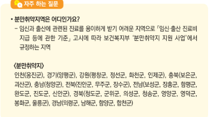 • 신청 당시 분만취약자에 주민등록이 되어 있으면서 연속하여 30일 이상 거주한 경우 20만원 추가 지급