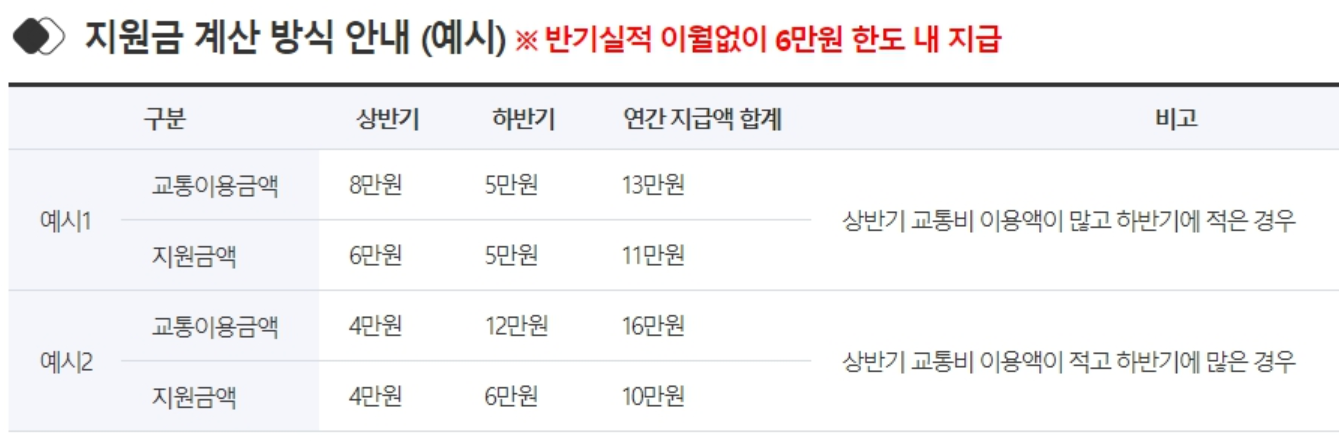 이번교통비 지원은 2023년 상반기 경기버스(연계, 환승포함) 이용실적에 한해 최대 6만 원 한도로 받을 수 있음