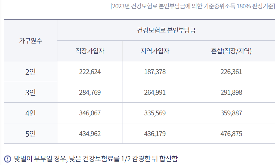 신청대상자는 1)과 2) 모두 기준이 충족되어야 합니다.
