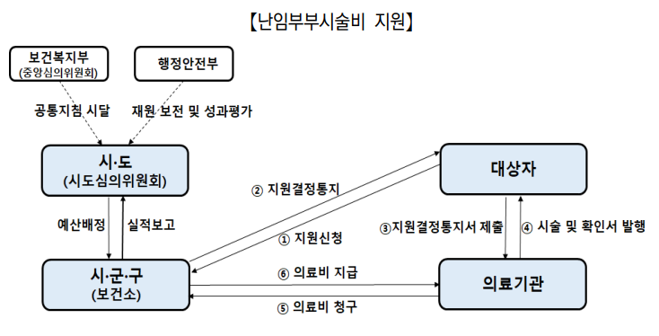 지원대상자는 시, 군, 구 보건소에서 지원결정통지서를 교부받아 시술을 받는 정부지정시술 기관에 제출