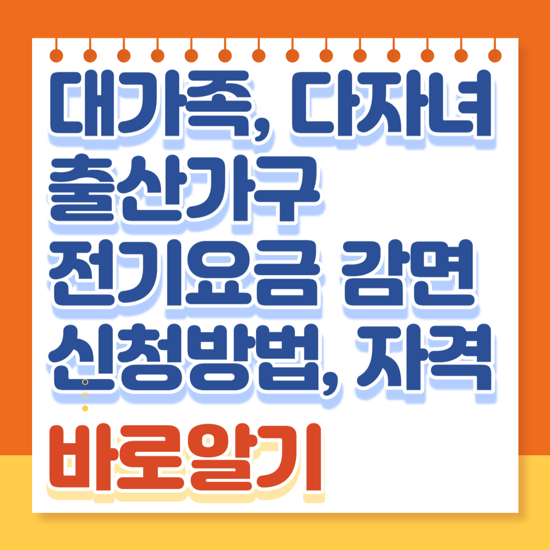 그렇다면 대가족, 다자녀, 출산가구 전기세 감면 신청방법, 지원대상 등에 대해서 좀더 자세히 알아보도록 하겠습니다.