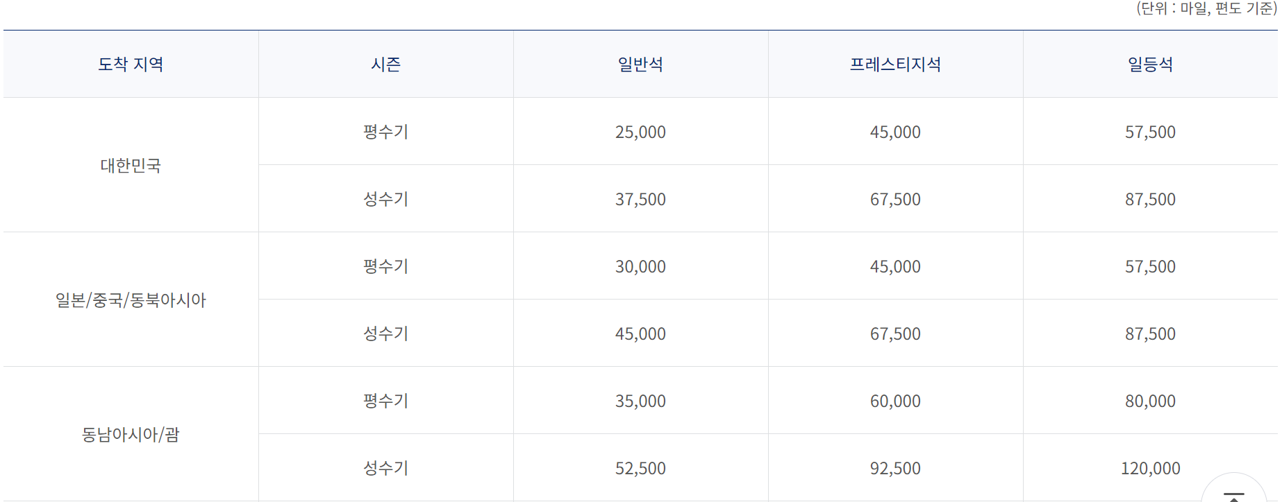 - 고객 편의를 위해 추가좌석을 구매하시거나 악기를 기내에 반입하기 위해 별도의 좌석을 구매하는 경우에도 마일리지 항공권 이용가능