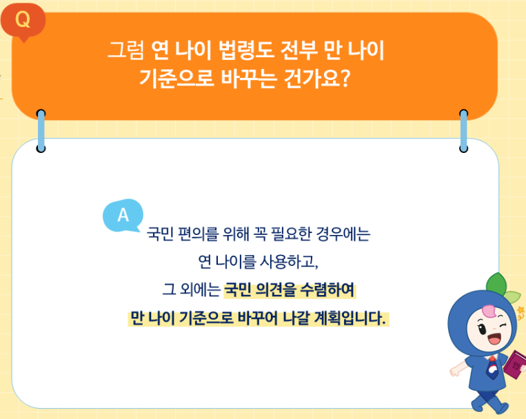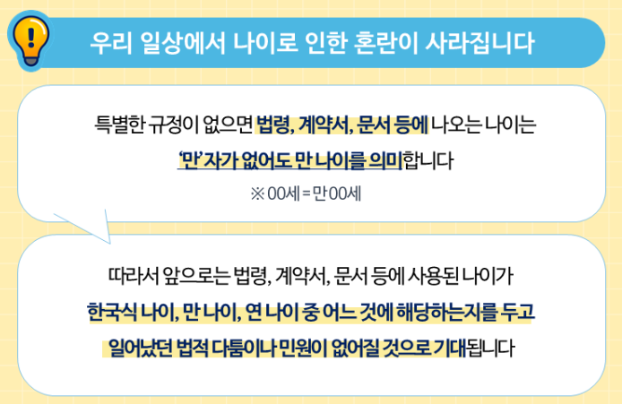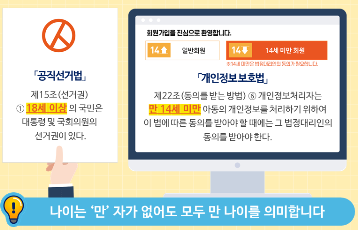 "만 나이"로 법적, 사회적 기준 통일! 일상생활에서도 만나이 사용으로 통일합시다!
