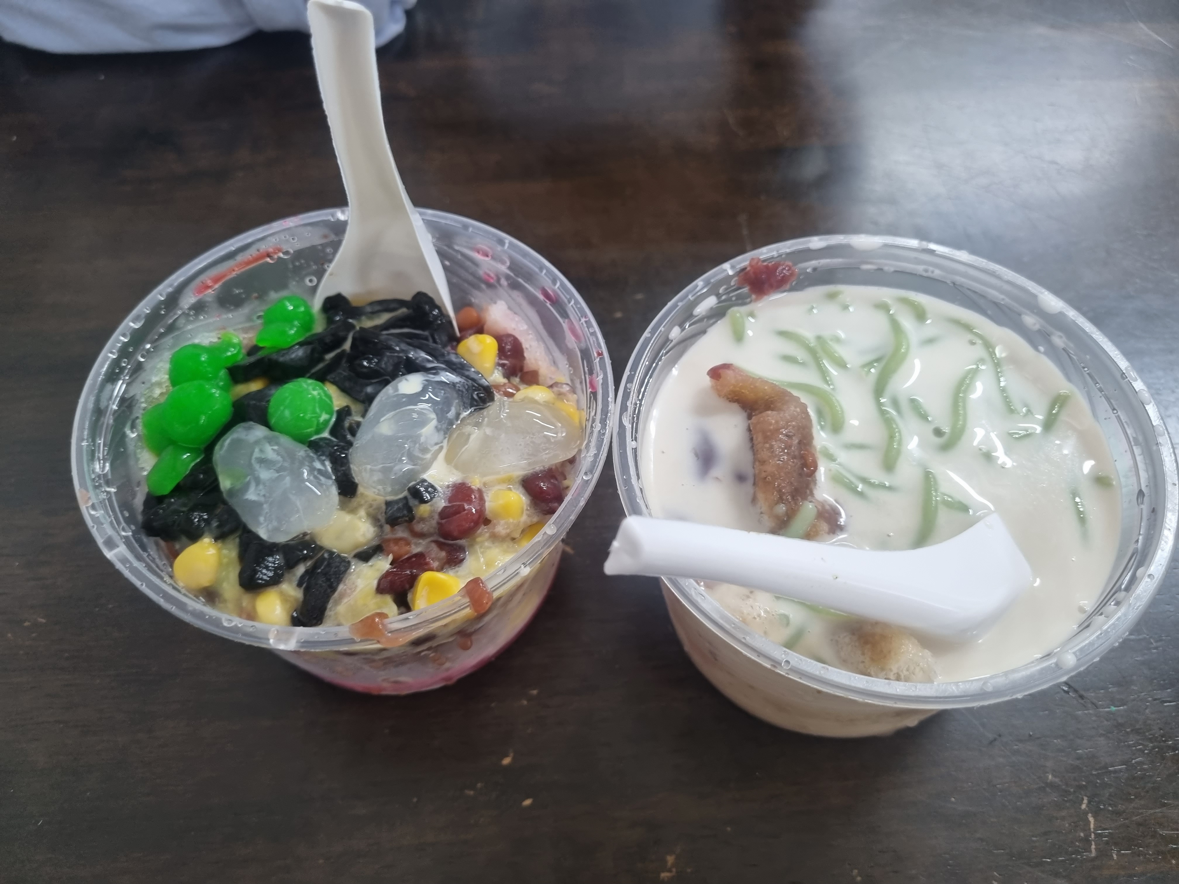 너무 더워 시원한 아이스카창과 첸돌이 당겨 사 먹었습니다. 연유 듬뿍 들어간 빙수를 먹으니 더위가 한 김 가셨습니다.