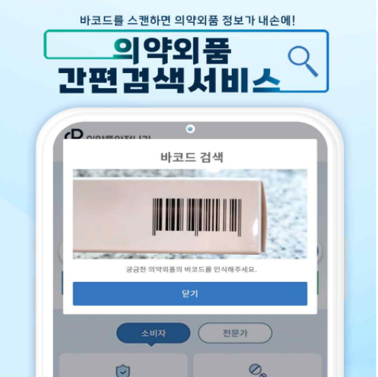 의약외품을 더욱 쉽고 편리하게 의약외품 정보를 확인할 수 있는 의약외품 모바일 간편검색서비스를 올해부터 본격제공합니다.