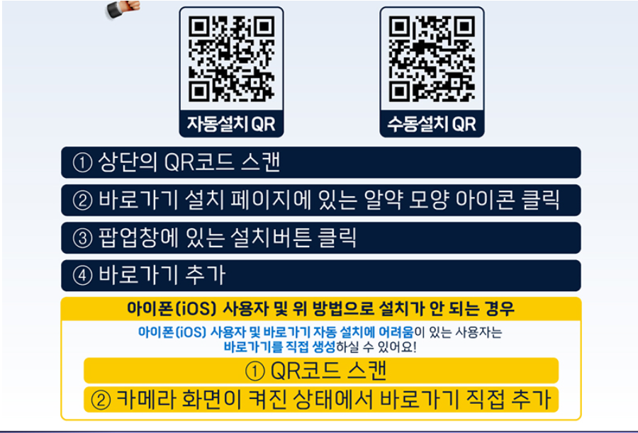아래의 QR코드를 사용하여 어플을 다운받으시기 바랍니다.