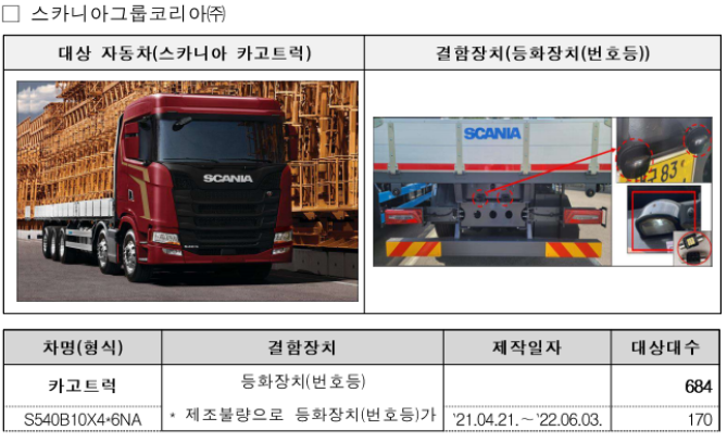 아래의 리콜 스카니아 대상 자동차에 대해서 확인하세요~