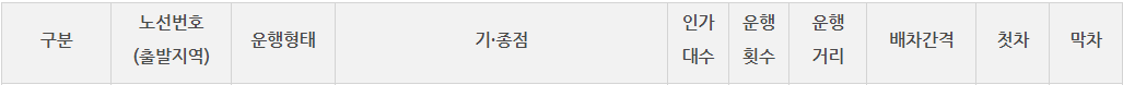 간선 | 의정부 가능~도봉산역 | 4 | 4 | 10km | 15~20분 | 0630 | 0715 |