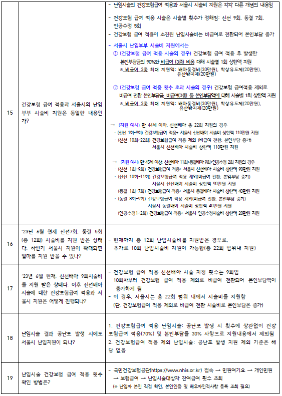 ㅤㅤ→ 서울시 6개월 이상 거주기간 충족 시 서울시 난임부부 시술비 지원으로 전환