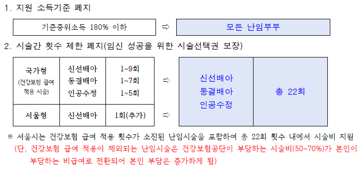 ㅤ- (기존) 기준 중위소득 180% 이하 가구 → 모든 난임부부 확대