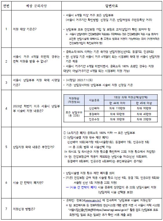 ㅤ- 단, 기존 국가형, 서울형, 타 지자체형(시도, 시군구) 난임시술 지원횟수 누적 적용 됨
