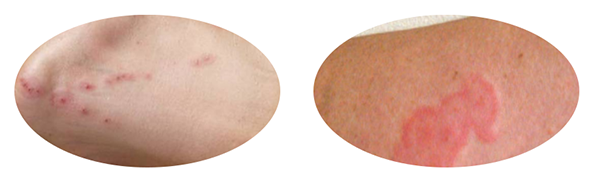 물린 후 발진(붉은 반점)과 가려움증이 빠르면 1시간, 늦으면 14일 이후 나타나며 1~5일간 지속됩니다.