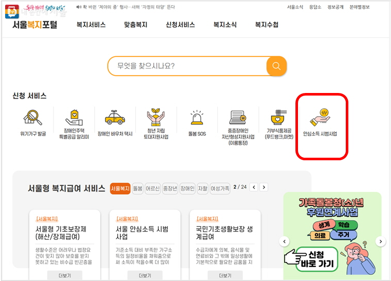 서울시에서는 가족돌봄청소년 및 청년과 빈곤, 질병 등 저소득 위기가구를 집중 발굴해서 안심소득 시범사업에 참여할 가구를 모집합니다.