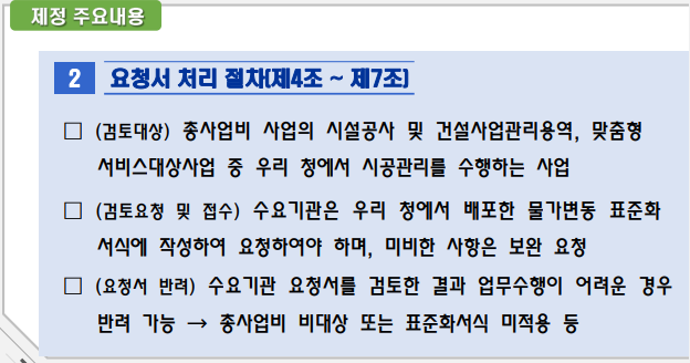조달청에서는 국가재정법, 기획재정부 총사업비관리지침에 따라 물가변동으로 인한 계약금액 조정 검토업무를 수행하고있습니다. 2022년부터 물가변동 검토기간을 단축하고자 표준화 서식을 마련하여 금년 5월부터 시행하고 있는데요