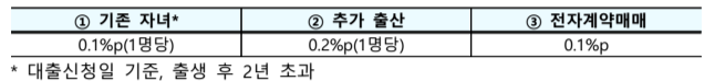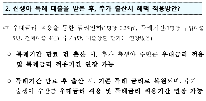 6. 추가출산혜택: 아이 1명당, 금리0.2%p 인하 및 특례기간 4년 연장