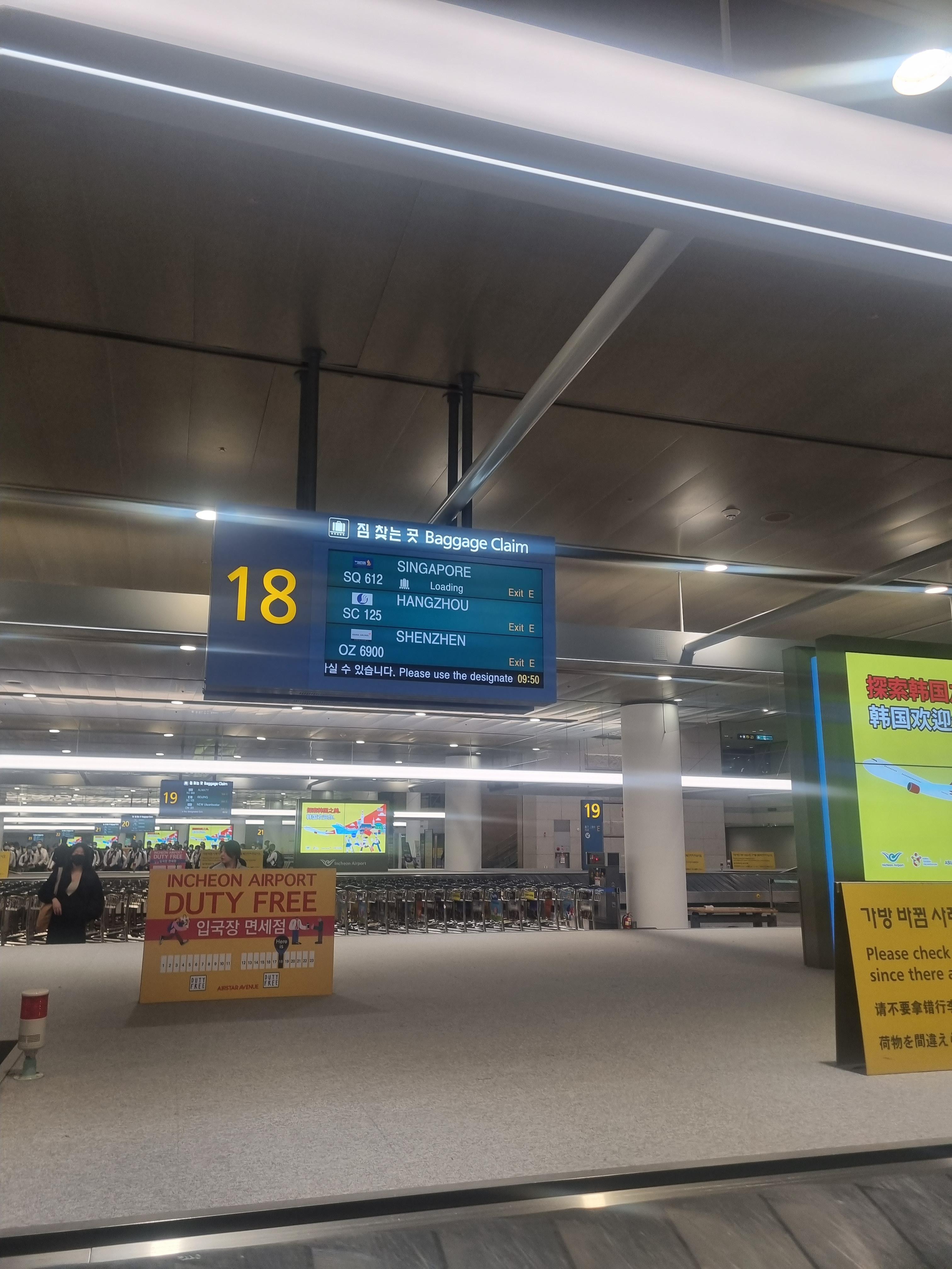 한국에 도착하여 입국심사를 빠르게 하고 나오면, 18번이 수화물 찾는 곳이었습니다. 페낭에서 짐을 넣었던 터라 짐이 조금 늦게 나왔지만 그다지 피곤하지 않은 비행이었습니다.