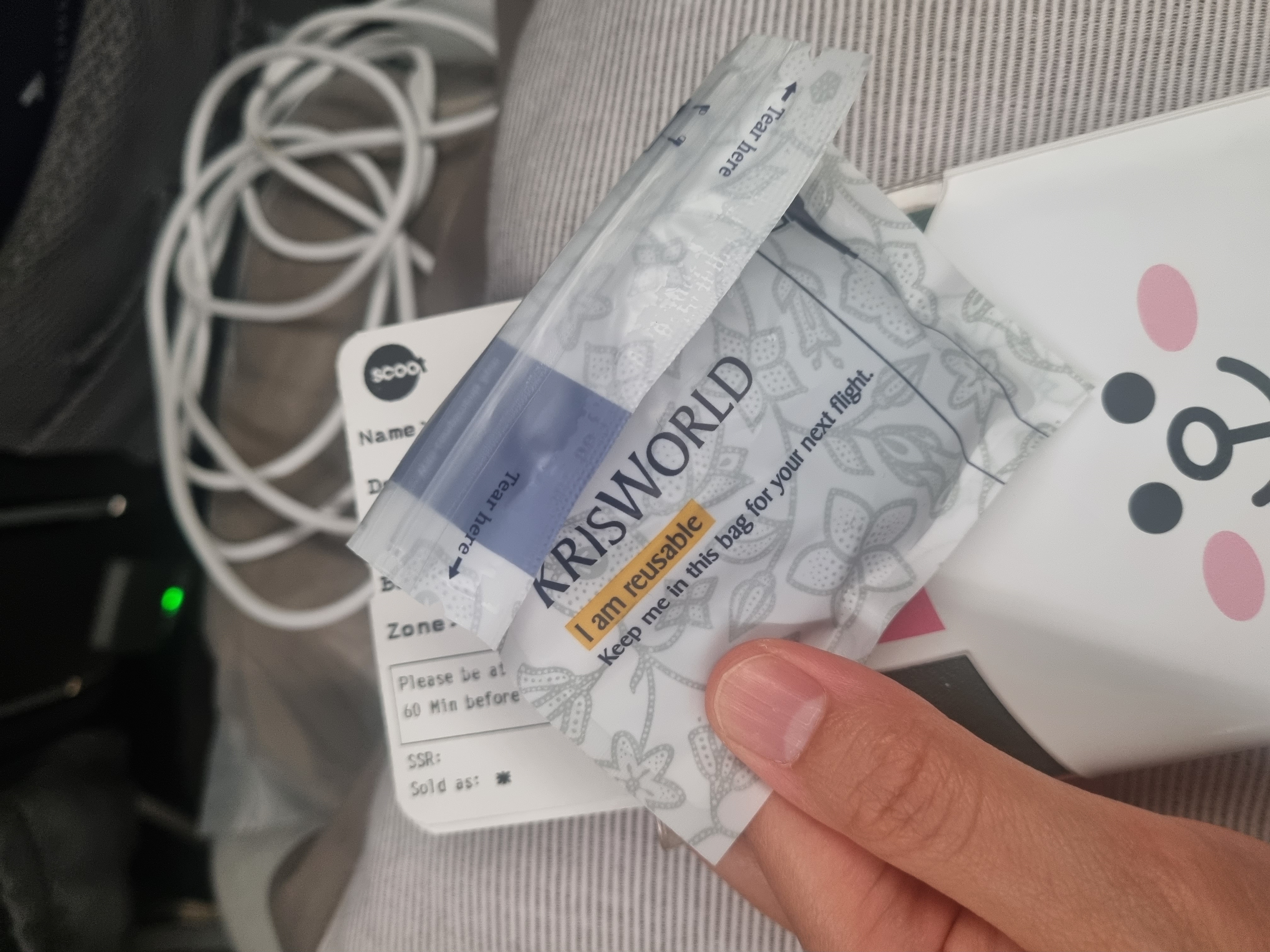 위 사진은 담요사진입니다. 기내가 추워서 담요를 요긴하게 썼습니다.
