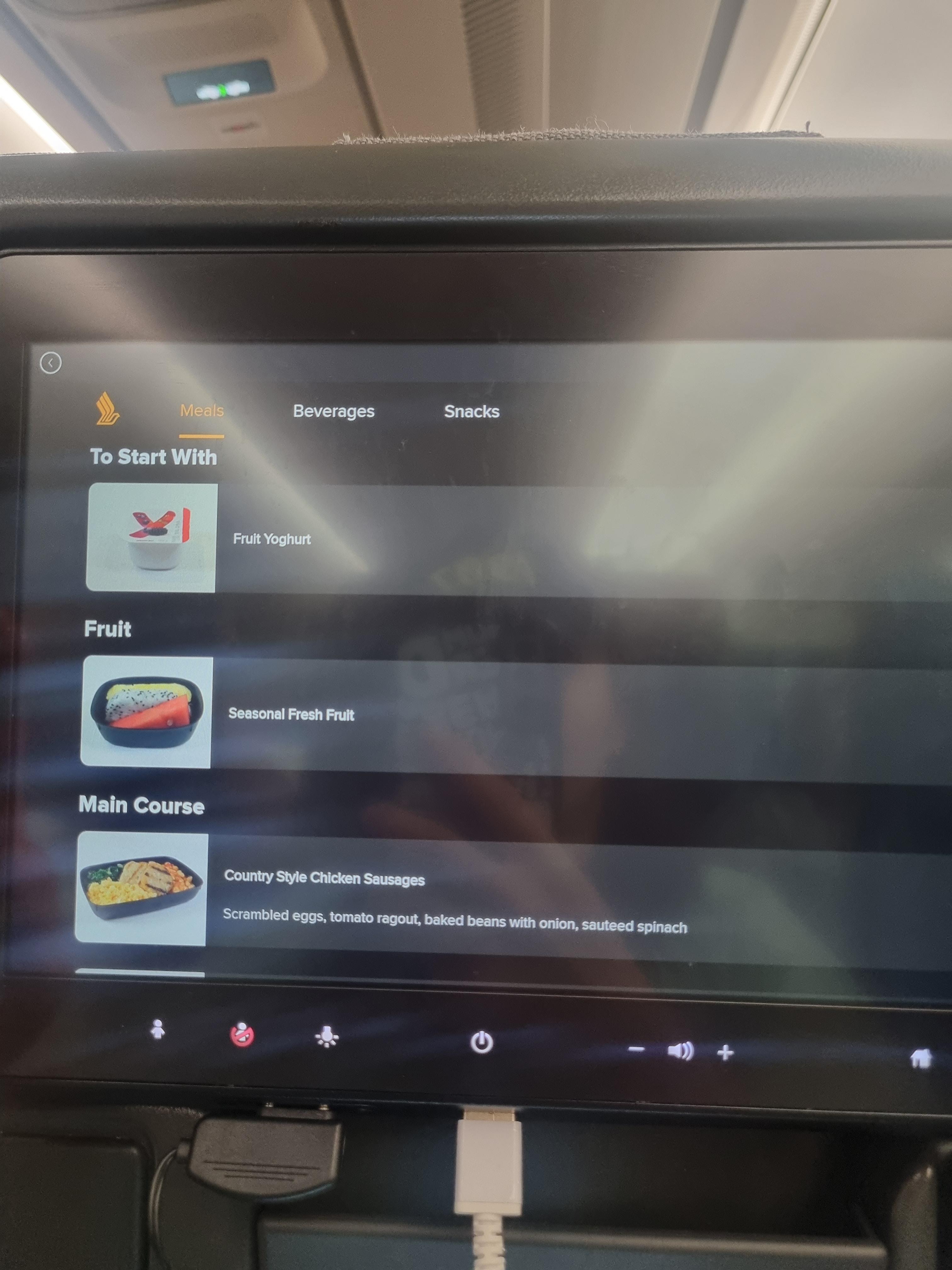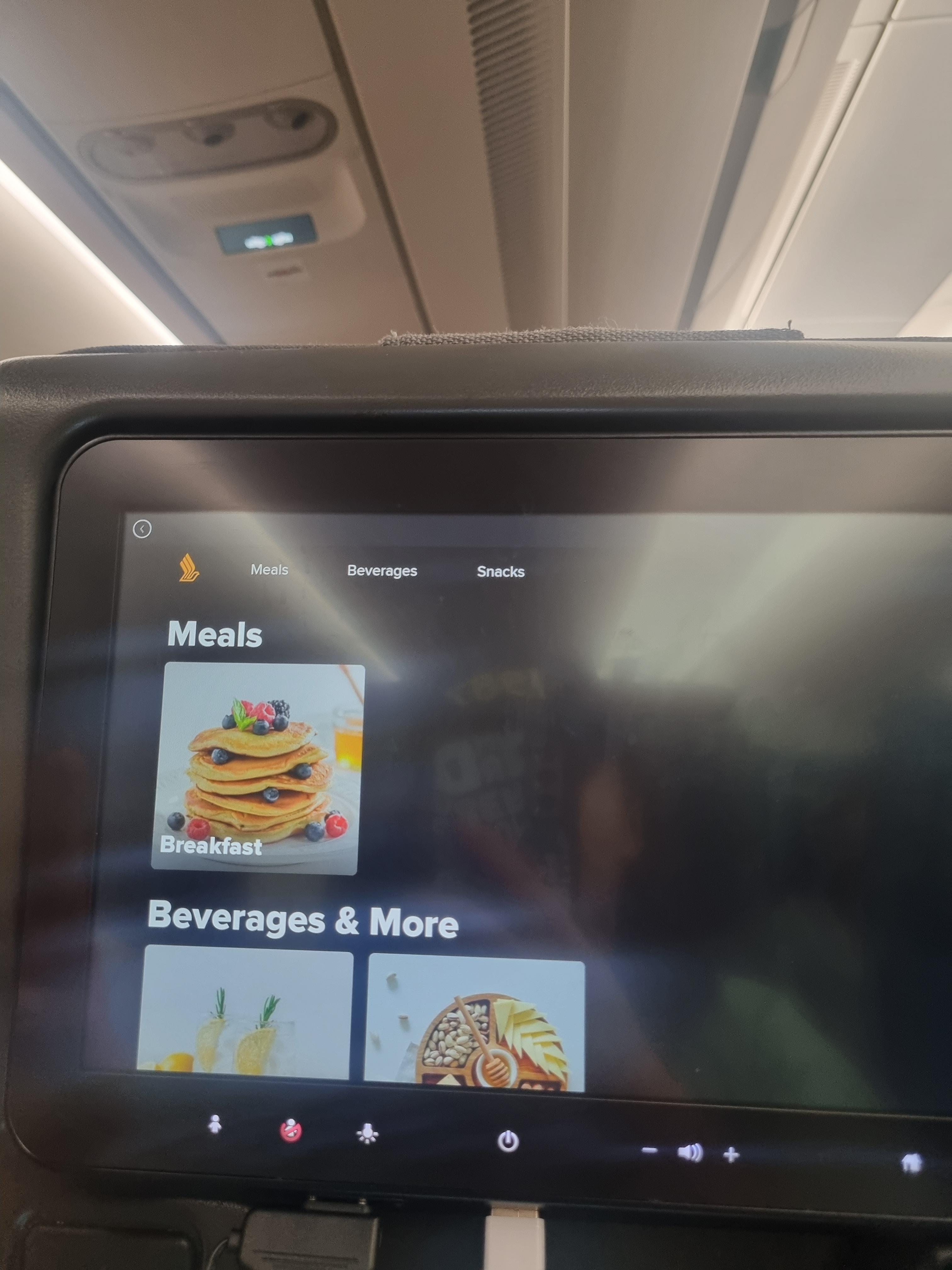 MEALS 부분을 클릭하면 저희는 새벽 비행기였기 때문에 아침식사가 기내식이었습니다.