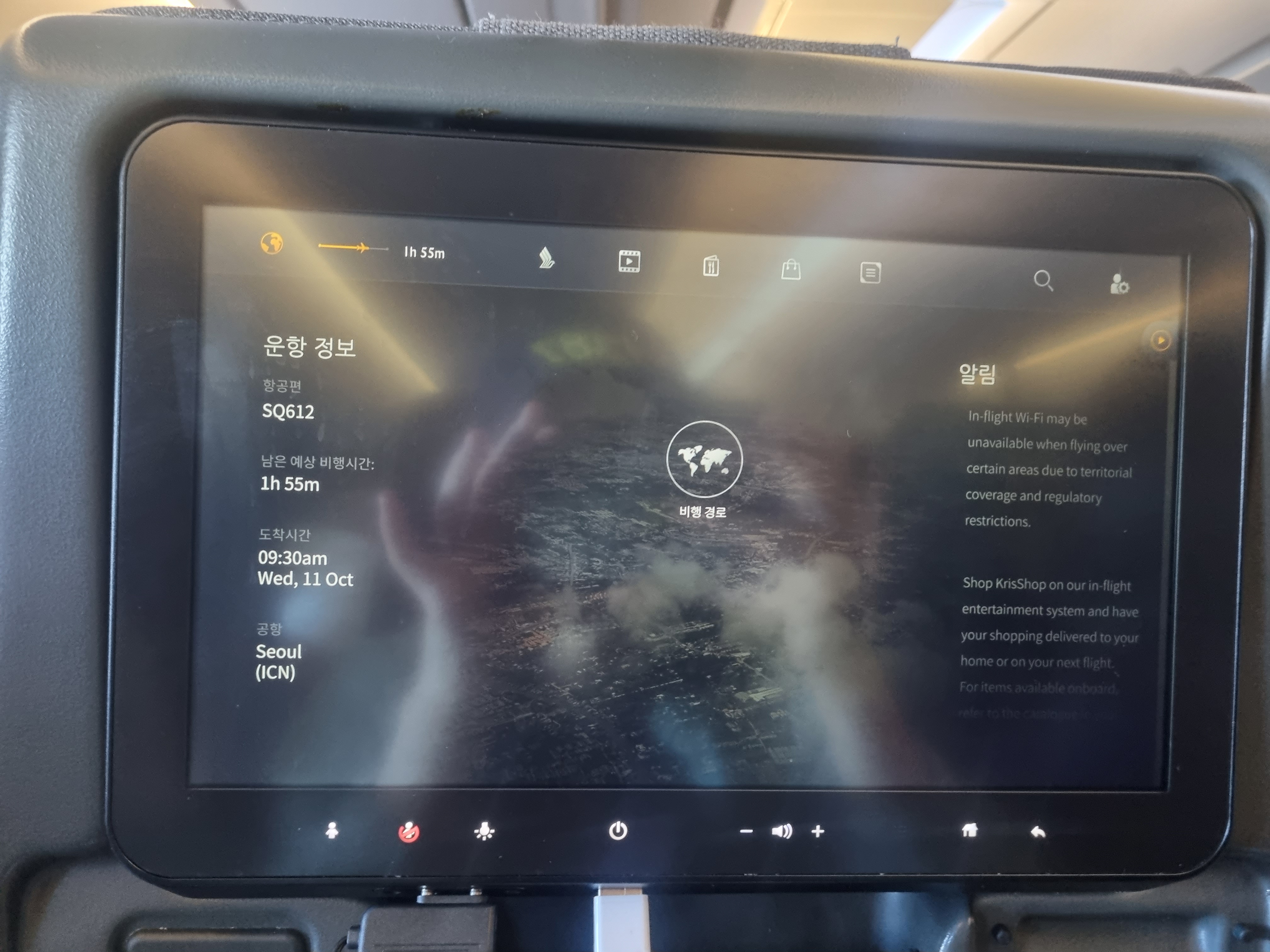 싱가포르항공은 탑 3 항공사입니다. 화면 모니터 자체가 터치감이 매우 좋고 다양한 콘텐츠와 볼거리, 3D로 비행기 남은 경로까지 볼 수 있어서 너무 좋네요
