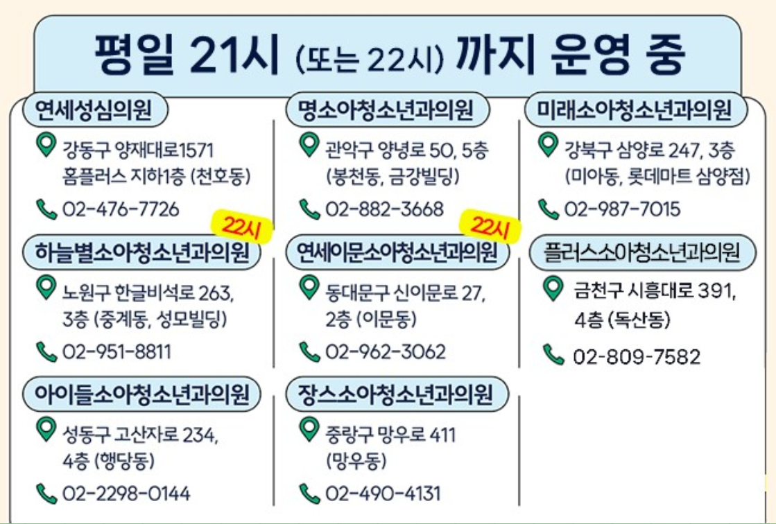 이에 대해서 서울시에서는 야간, 휴일에도 언제나 진료가 가능한 병원에 대해서 알아보겠습니다.