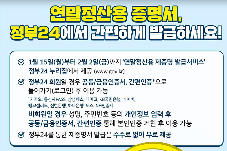 · ‘정부24 연말정산용 제증명 발급서비스’ 제공