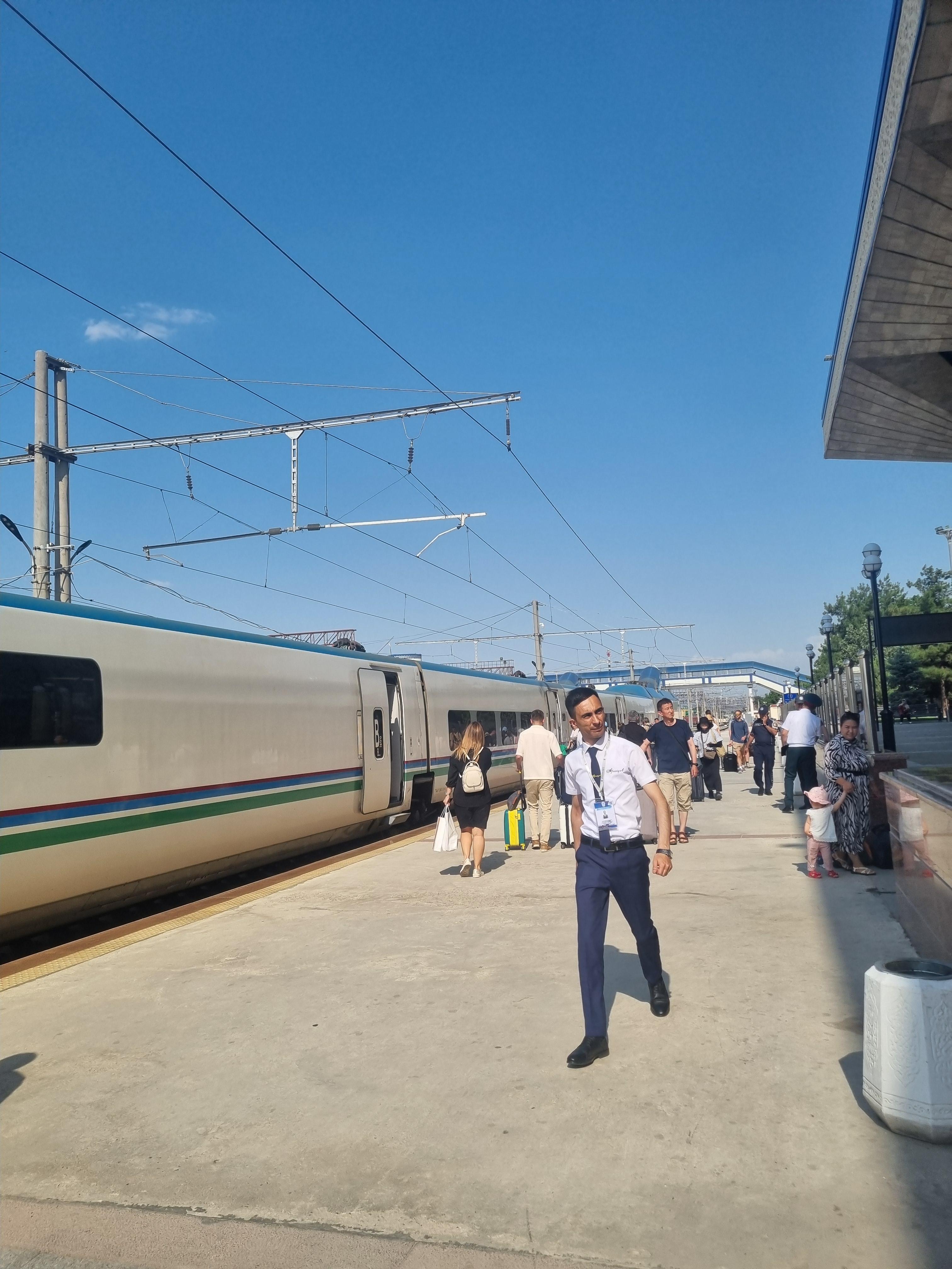 부하라에서 사마르칸트로 이동할때는 기차를 이용했으며, 우즈베키스탄은 우리나라 srt, ktx와 같은 고속철도(아프로시욥)가 개통되어 약 2시간정도(1시간43분)로 사마르칸트에 도착할 수 있었습니다.