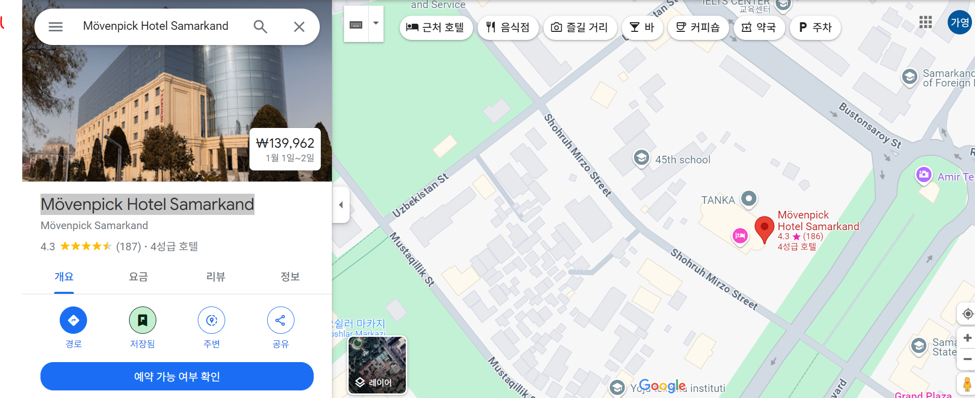 저희는 부하라에서 사마르칸트로 이동하였습니다. 저희가 사마르칸트에서 선택한 숙소는 바로 Mövenpick Hotel Samarkand 모벤픽 호텔입니다. 일단 헬스장구비, 조식훌륭, 좋은 위치까지 모두 충족