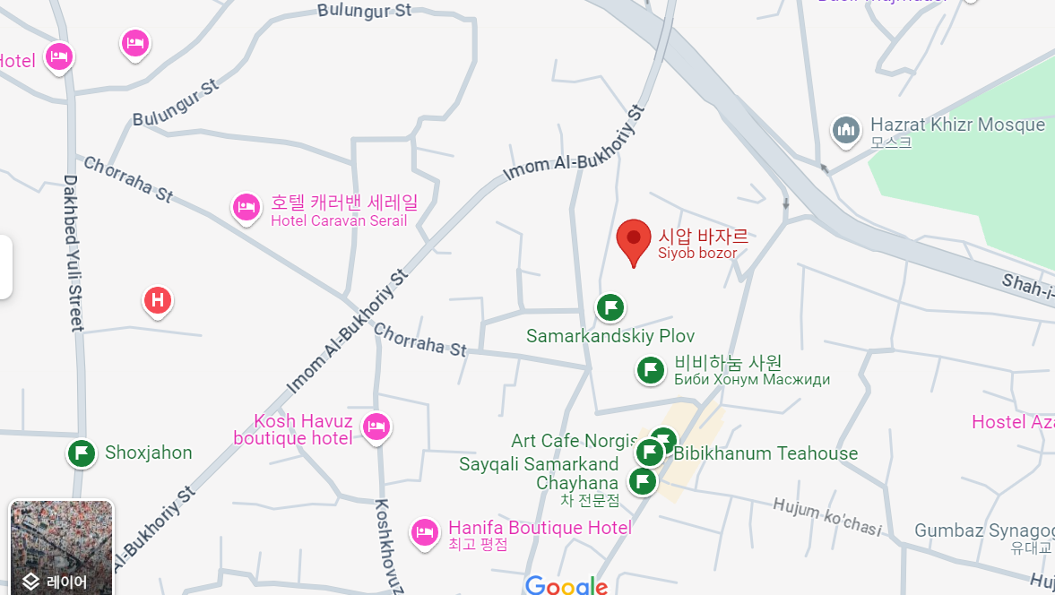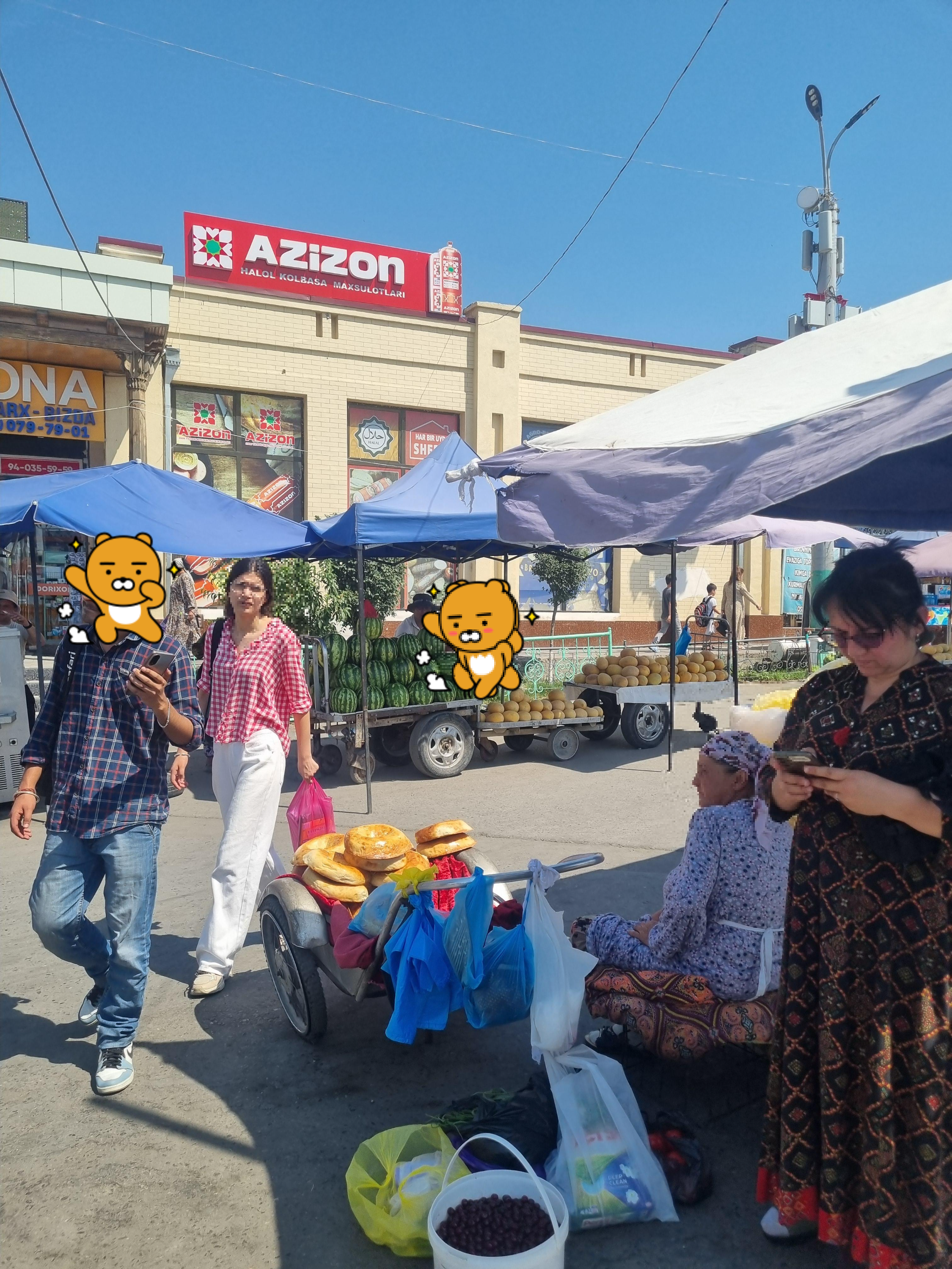 운영시간이 오후 7시까지여서 호텔에서 오전을 보내고 바로 나왔습니다. 시압바자르 물건들이 확 싸게는 느껴지지 않았습니다. 오히려 타슈켄트에서 기념품, 마그넷, 견과류 등을 초르수 시장에서 구매하시는 걸 추천드립니다!