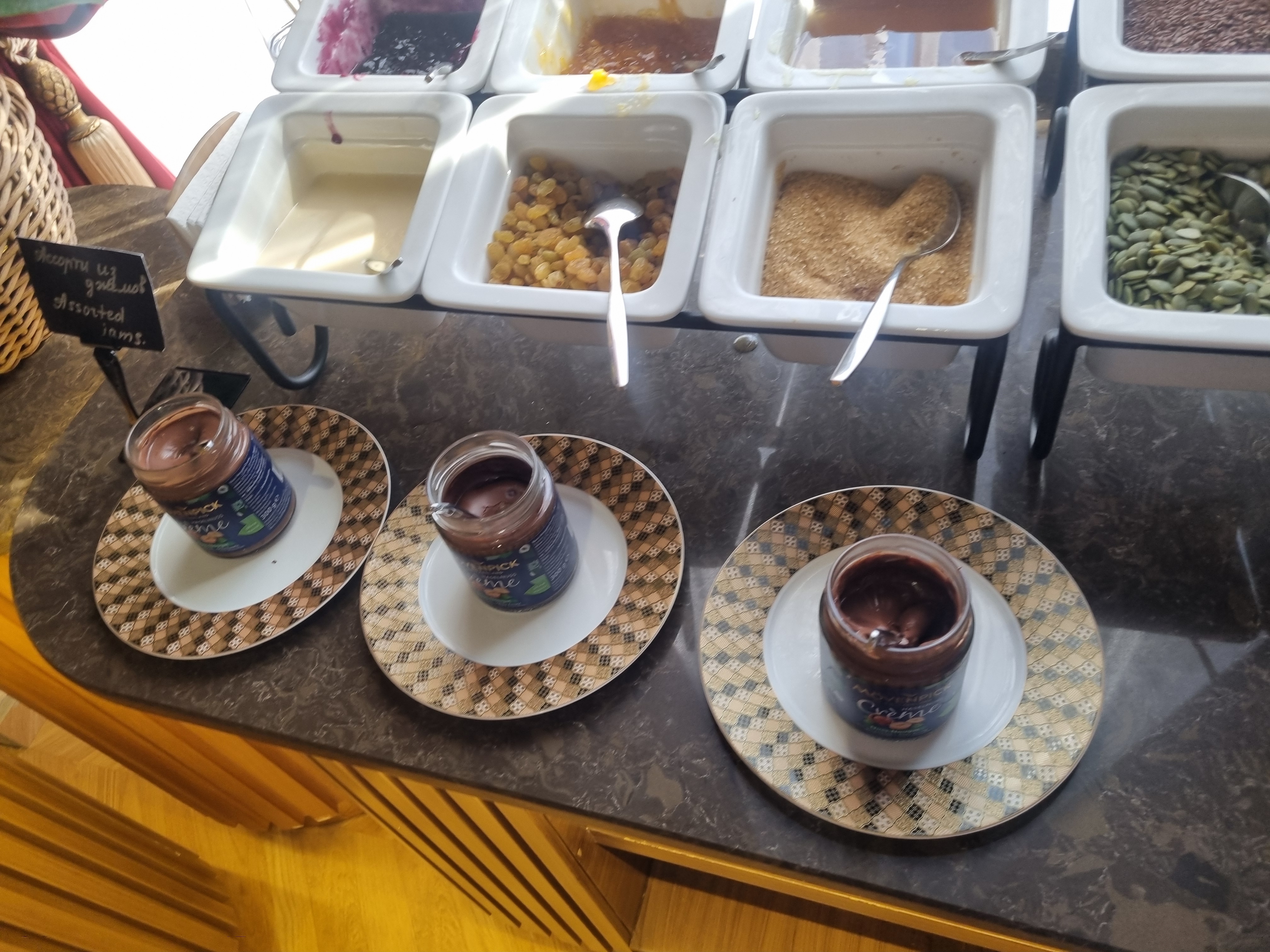 팻말이 있는 곳으로 들어가면 약간 으리으리한곳이 나오는데요 이곳을 지나치고 문으로 들어가면 됩니다.이 문을 통과하면 이렇게 널찍한 조식먹는 공간이 펼쳐집니다.조식먹는 공간이 매우 넓어서 자리도 넉넉해요이제부터 조식입니다. 할바, 말린과일등이 있습니다직접 착즙한 당근주수와 캄폿 주스도 있습니다.사과주스, 체리주스, 생수 등 주스도 있습니다.커피내리는 기계도 있습니다.우즈벡은 각종 잼도 정말 다양해요. 누텔라, 무화과잼, 딸기잼, 블루베리잼 등.. 연유까지