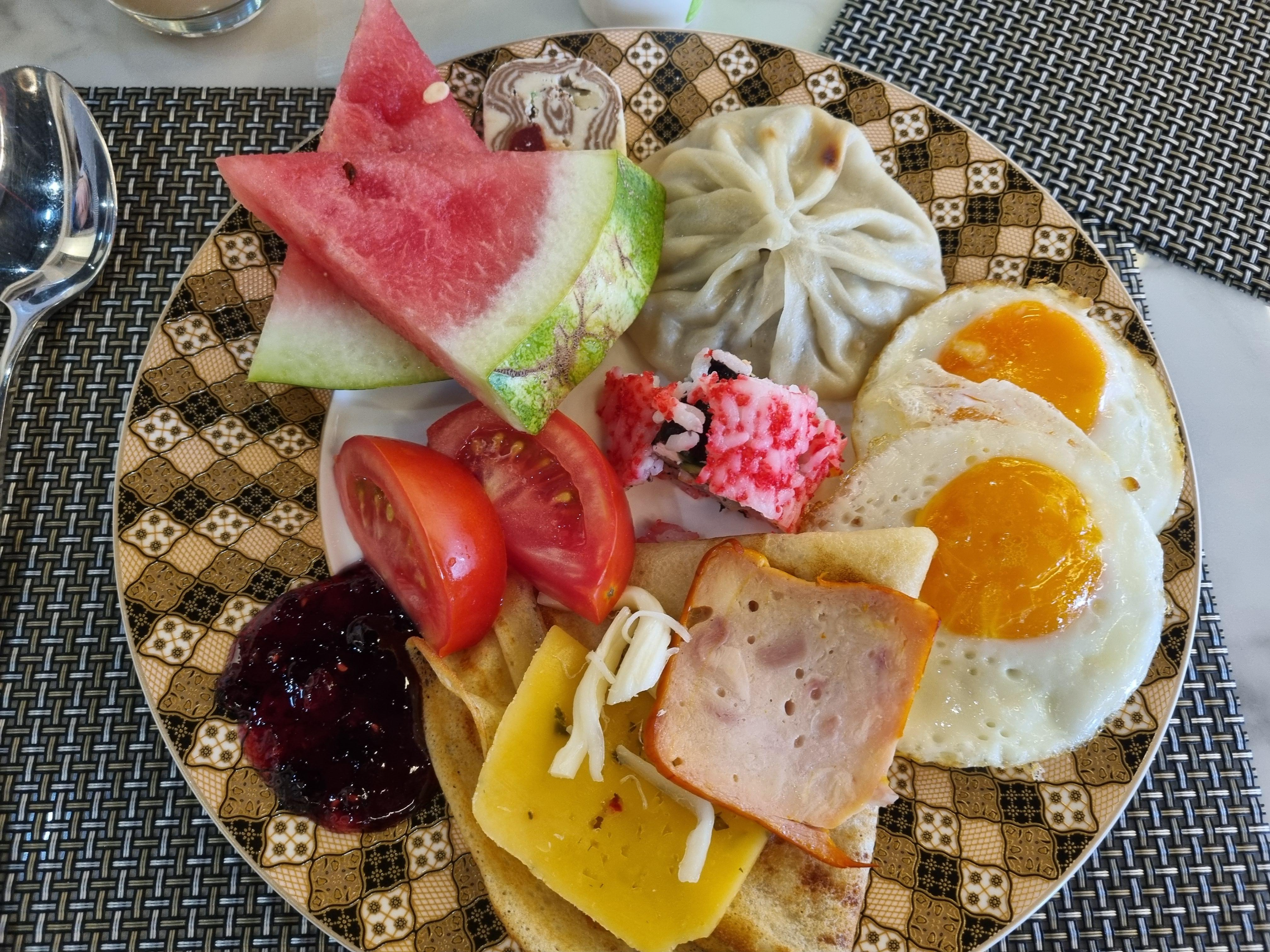 우즈벡은 정말 다양한 햄류와 치즈가 반겨줍니다.다음날에는 우즈벡 전통 말고기 소세지까지 나왓구요 조금씩 메뉴가 달라집니다.