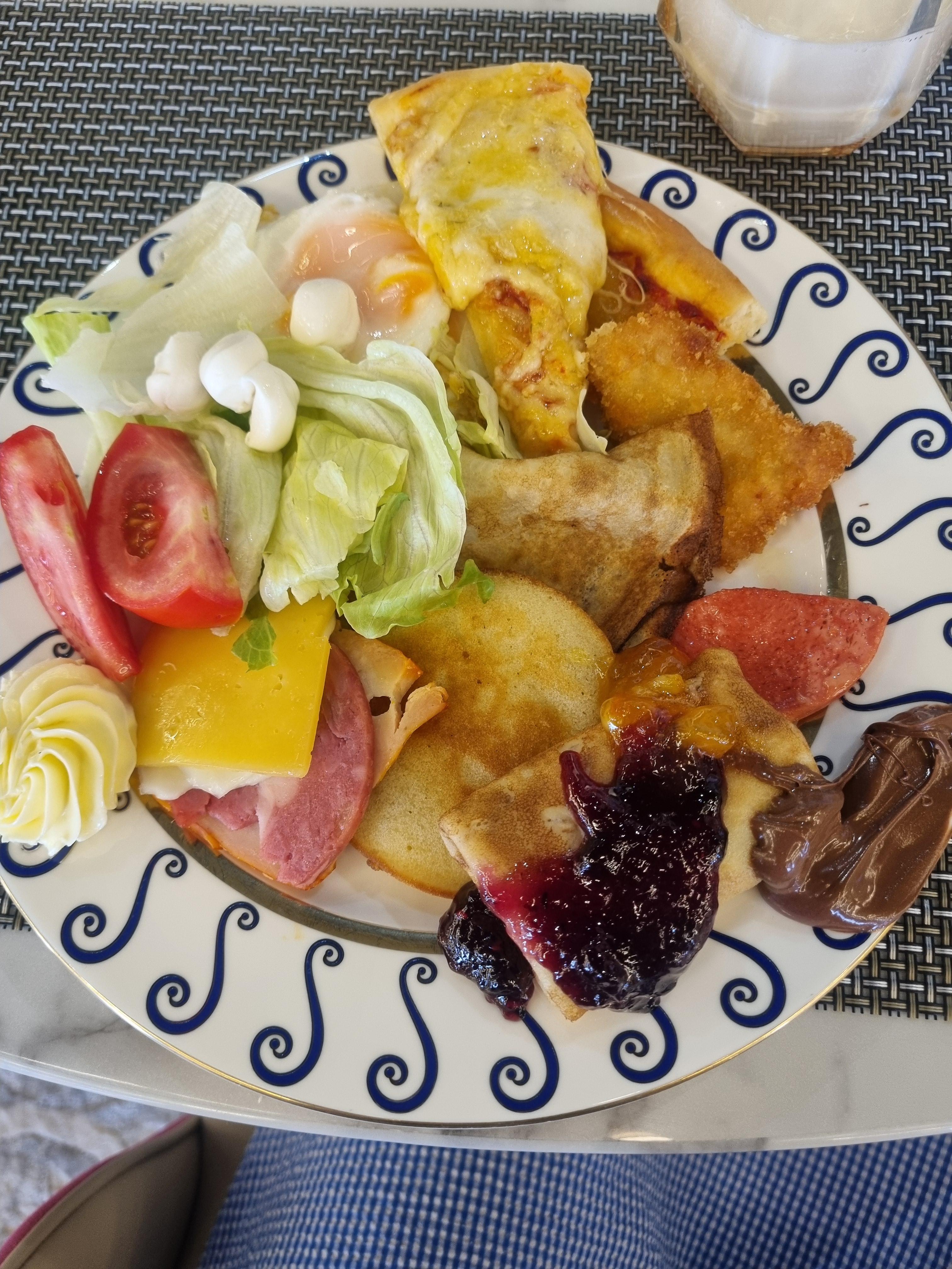 피자와 포리지(죽)도 있습니다.기본쌀밥과 브로콜리 야채치킨텐더 비슷한것도 있네요연잎에 싼밥도 있습니다. 우즈벡 전통 음식같더라구여. 조식에서 자주 등장해요부농소시지들도 있습니다.조식 필수템 계후스크램블 에그삶계(삶은계란)팬케익과 크레페도 있네요오트밀 죽같은건데요 생각보다 달달합니다.