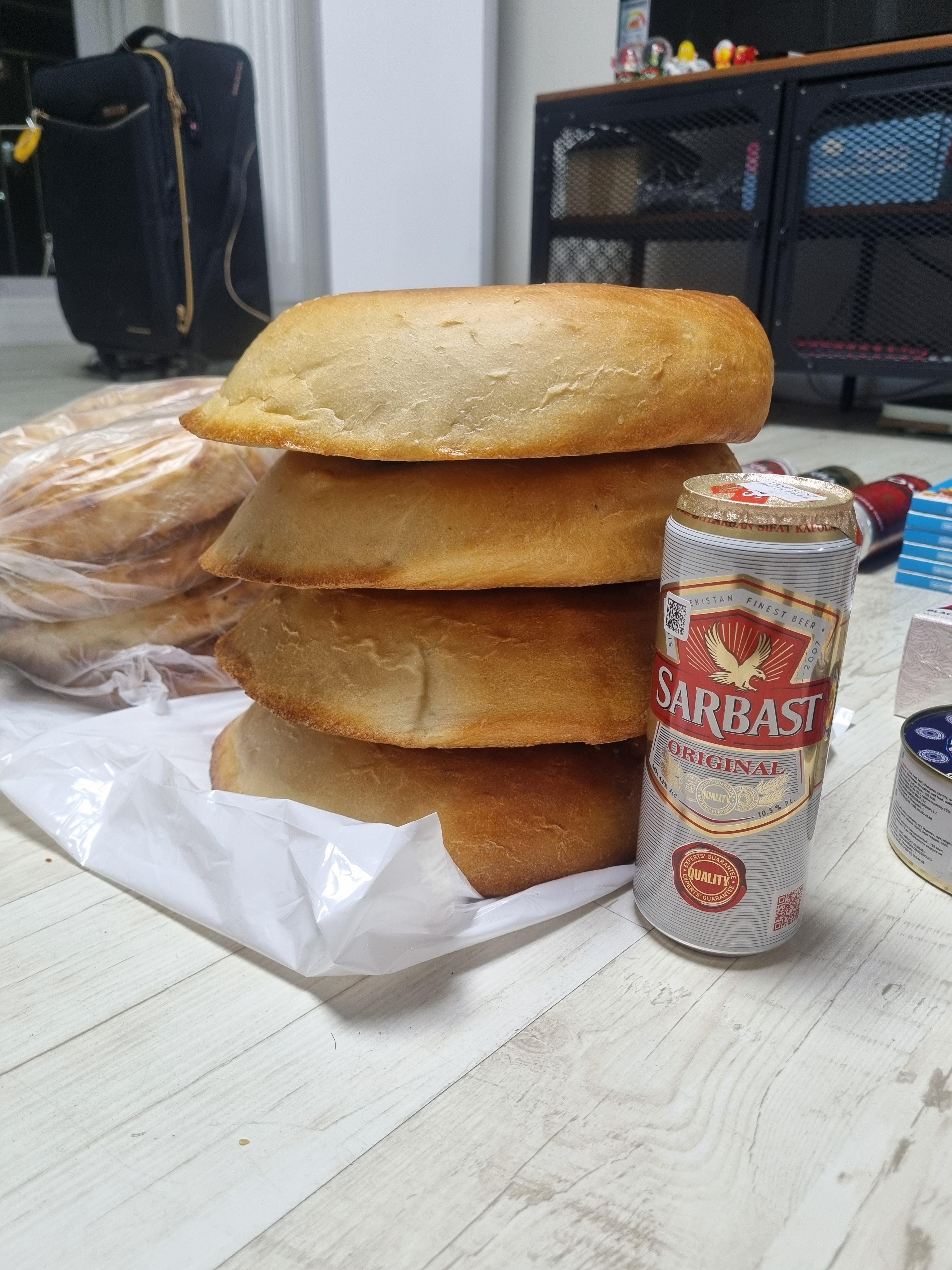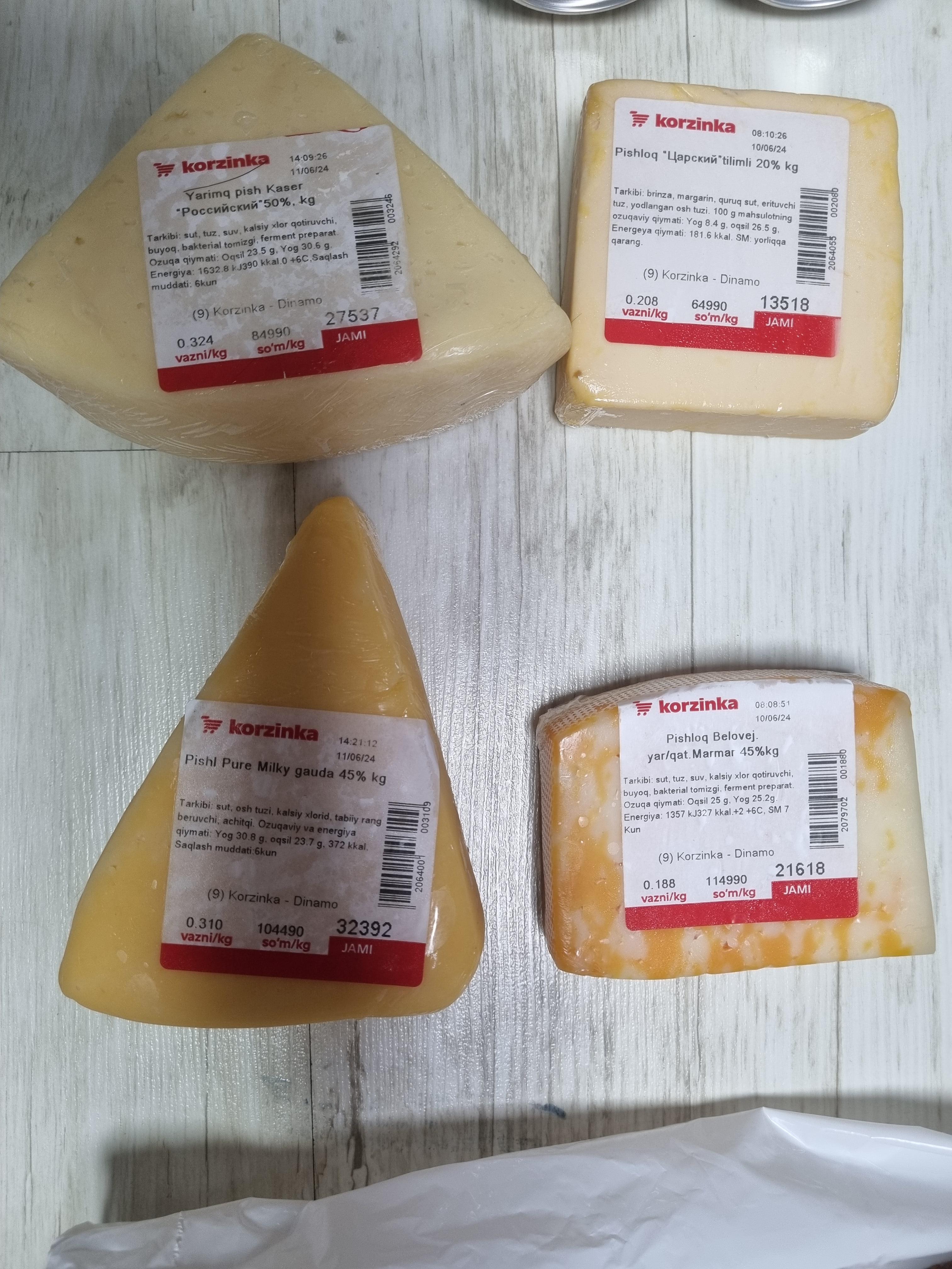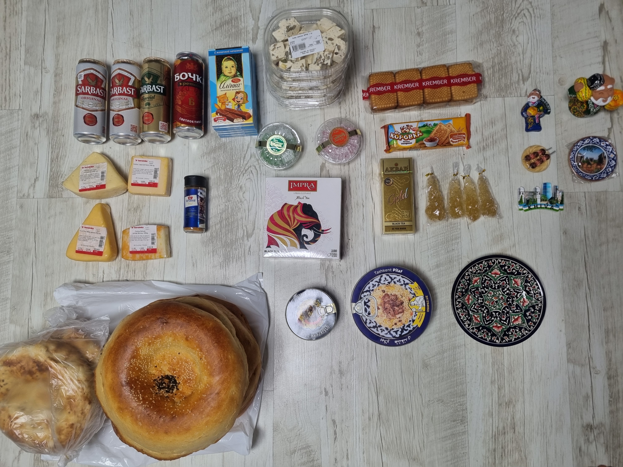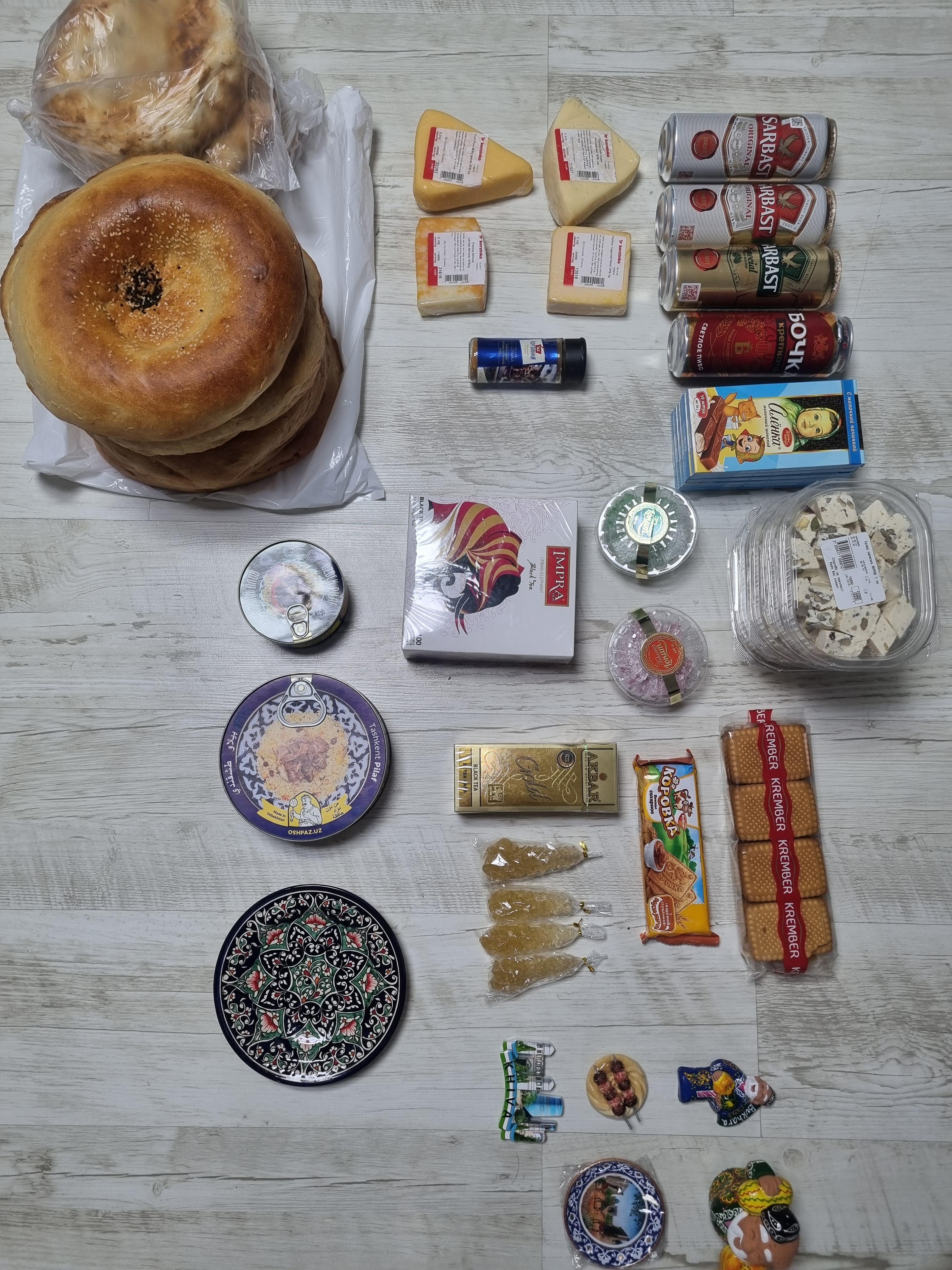 저희는 사마르칸트에 있는 Korzinka에서 구매하였으며, 사마르칸트빵은 시압바자르에서 구매하였습니다.