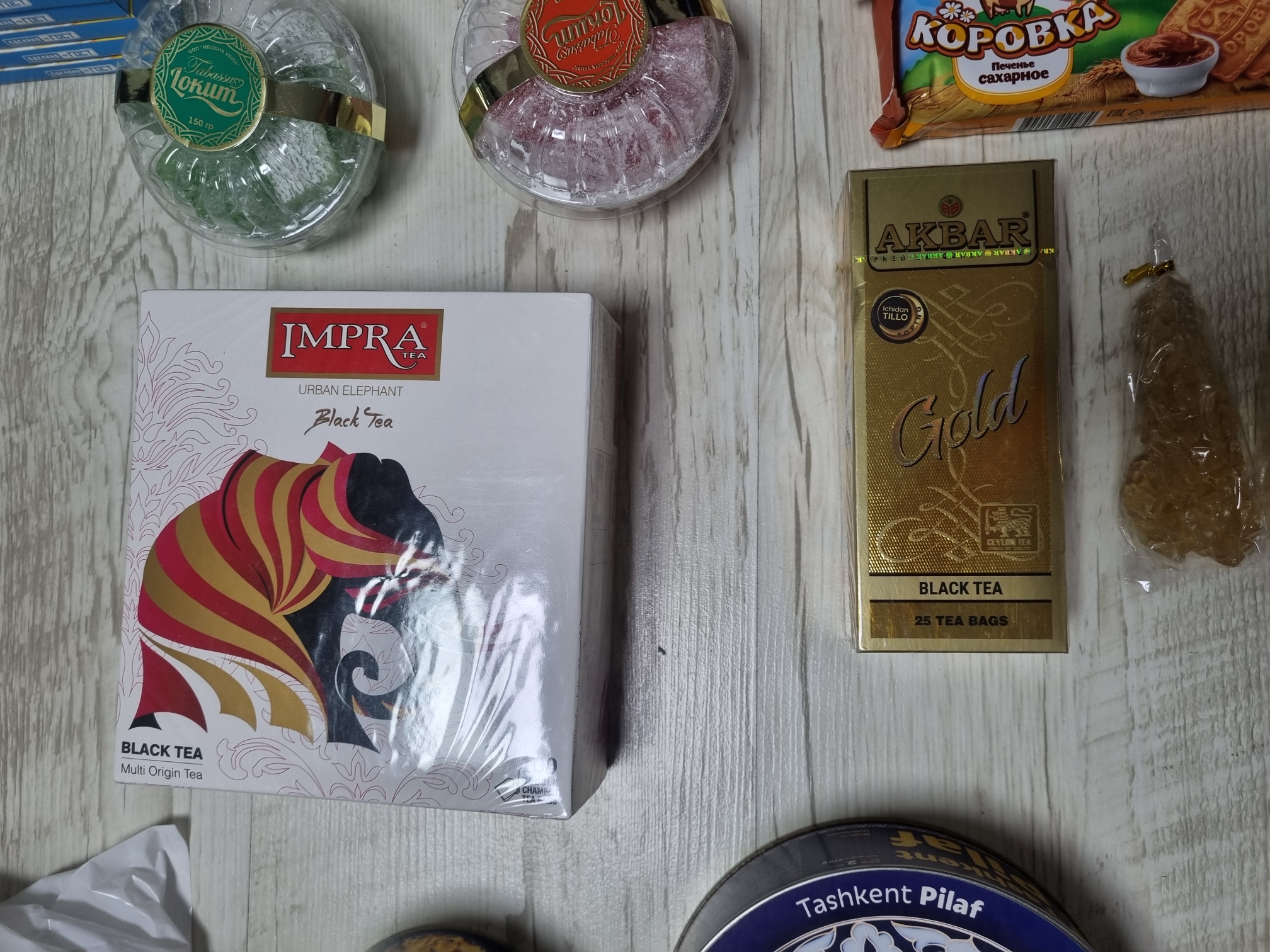 일부러 우즈베키스탄 브랜드의 티로 구매하였습니다. 왼쪽 티백 IMPRA 100개 들어있는건 2000원 정도였구요 오른쪽 25개 들은 AKBAR브랜드도 2000원 정도 였습니다.