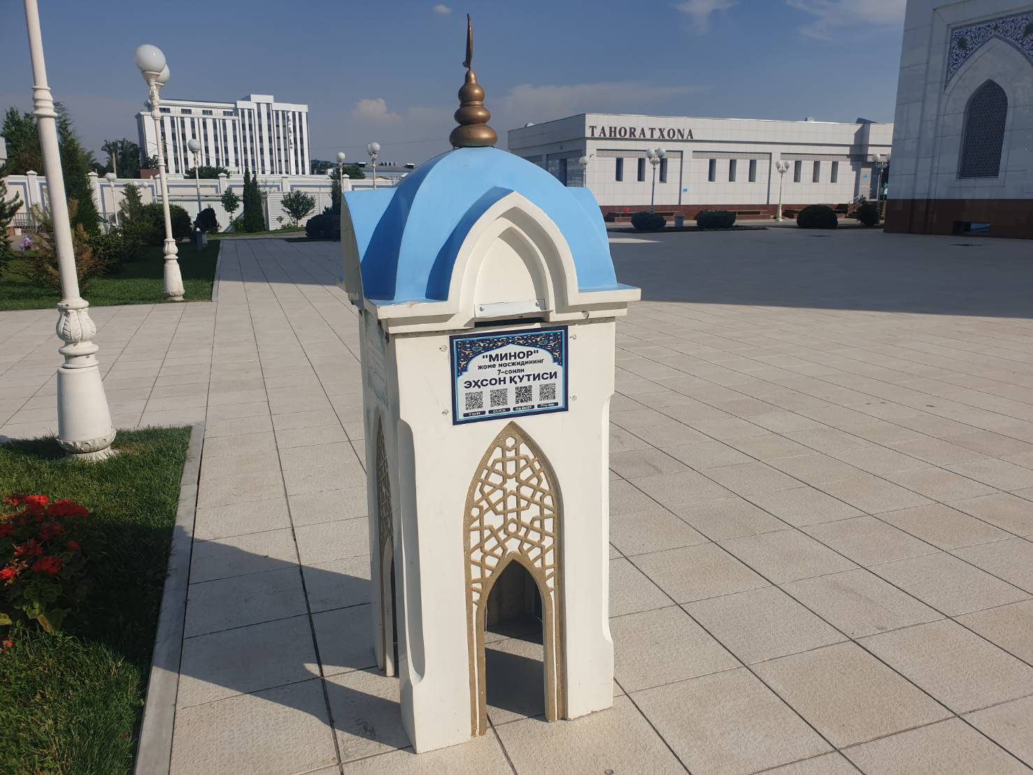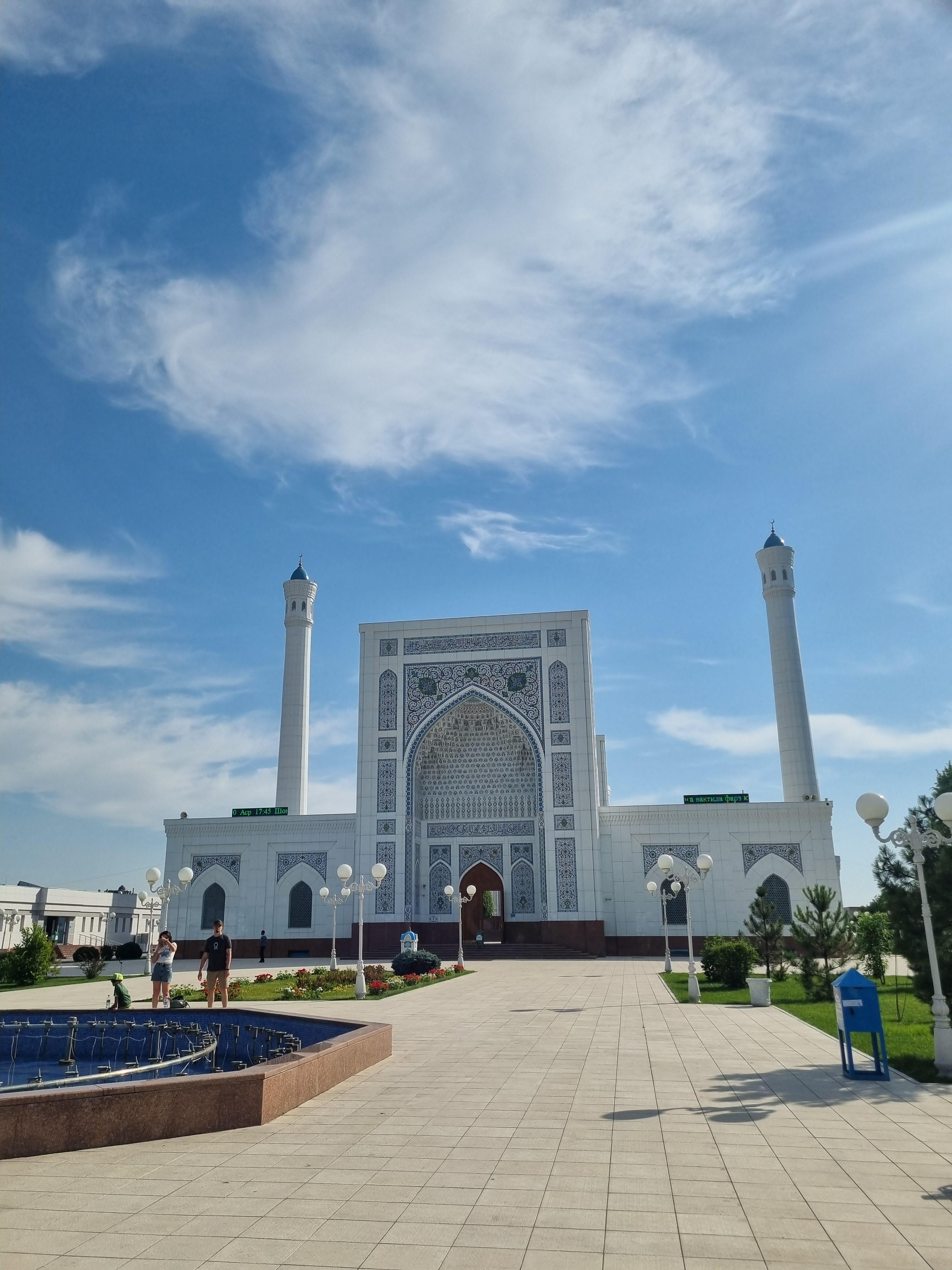 전통적인 대리석 외관, 첨탑, 청록빛 돔이 있는 거대하고 현대적인 모스크이며 화이트 모스크인 타슈켄트 무조건 방문해야할 관광지인 미노르 모스크를 방문하였습니다.