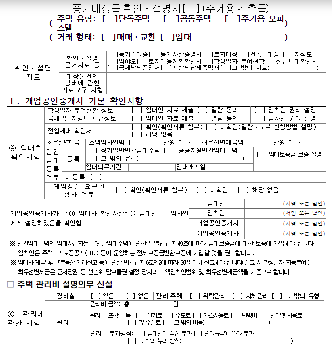 임대차 확인정보 설명의무 신설 양식