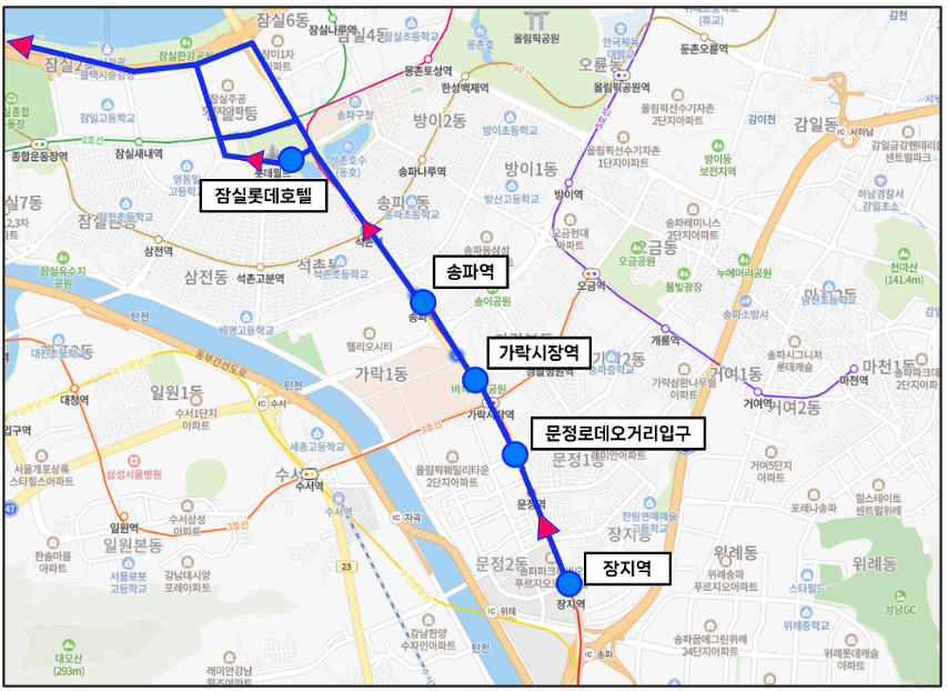 문정로데오거리 운행시간표 및 승하차장 위치 약도