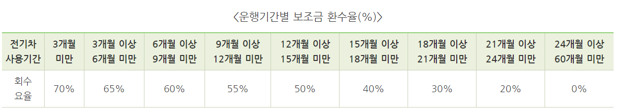 전기(이륜포함), 수소자동차 구매보조금 지급차량 의무운행기간