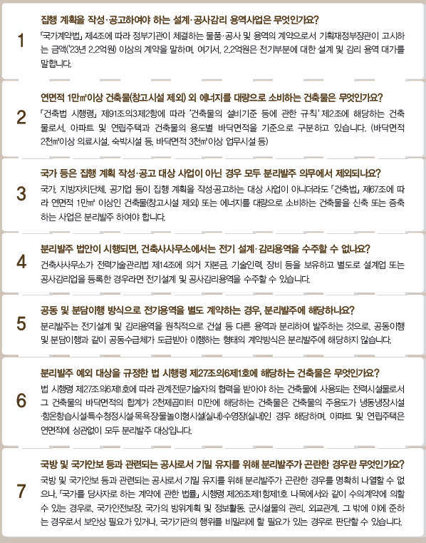 전력시설물의 설계, 공사감리 분리발주 주요내용