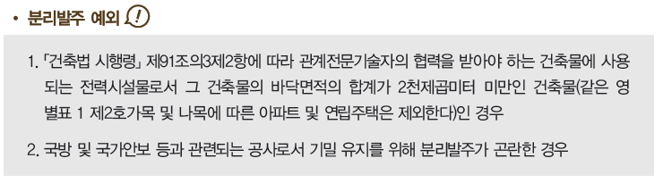 분리발주 대상 사업 용역은 아래의 조항을 따릅니다.