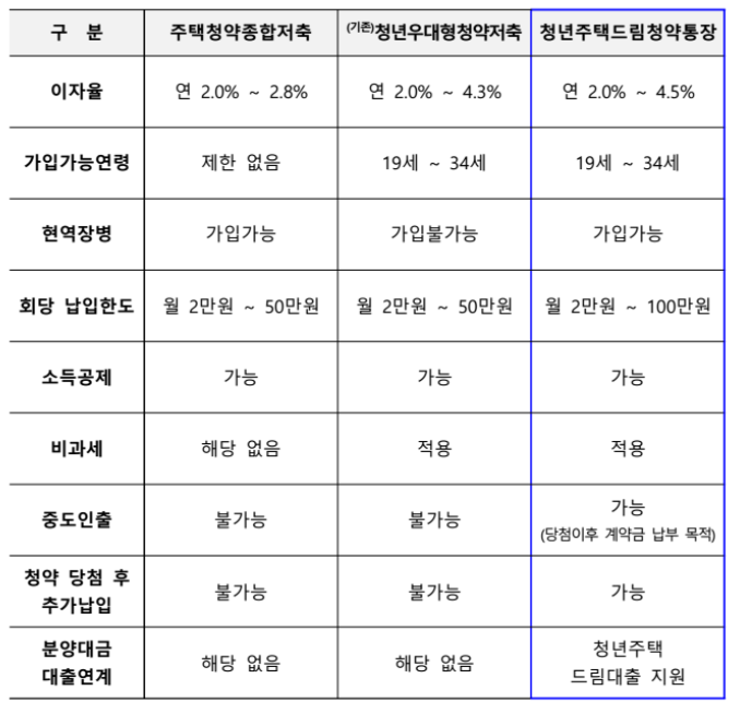 청년주택드림청약통장은 저축부터 청약, 대출과 연계하여 청년층의 자산형성과 내집마련을 지원하고 주거비 부담을 완화하기 위하여 국토교통부에서 기존 청년우대형청약저축을 대폭 확대 개편한 상품입니다.