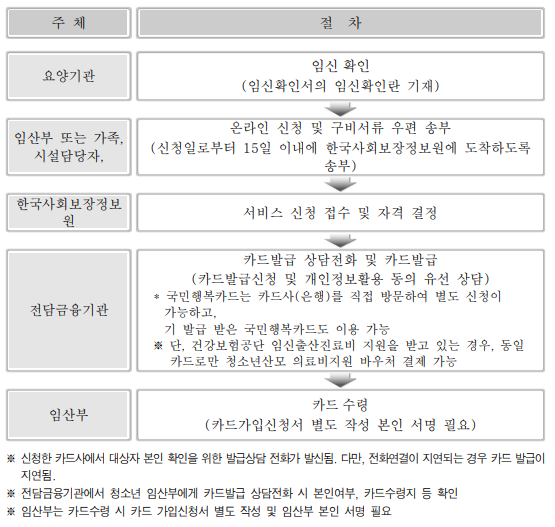 3) 방문신청: 보건소, 미혼모자시설에 신청