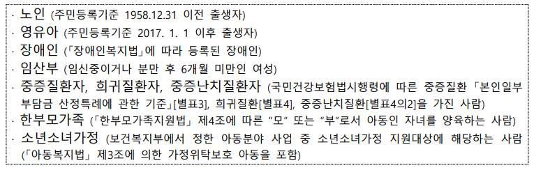 - (세대원특성기준) 수급자(본인) 또는 세대원이 다음 어느 하나에 해당