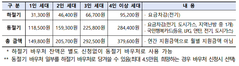 * 요금차감은 신청 시 신청자가 차감을 원하는 에너지원의 고객번호(납부자번호) 필요, 국민행복카드는 신청 후 신청자가 은행 또는 카드사에 직접 문의 발급