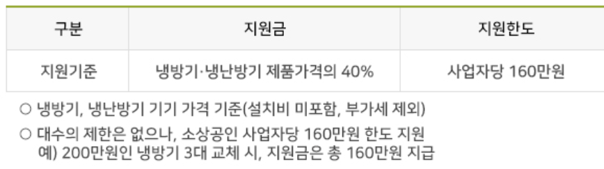 2) 지원대상 냉방기, 냉난방기 제품에 대해서는 각 제조사, 판매점으로 문의