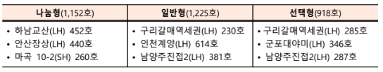 9월 사전청약은 총 3,294호 공급 예정이며, 나눔형, 일반형, 선택형으로 아래의 표와 같이 나뉘었습니다.