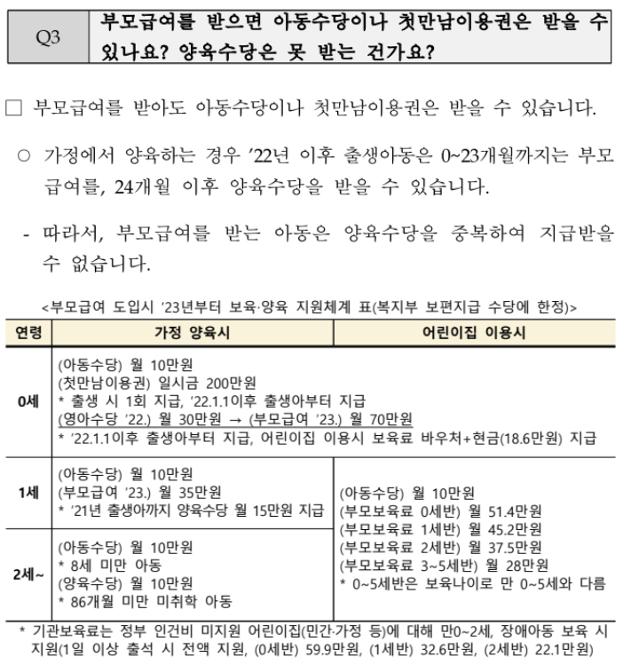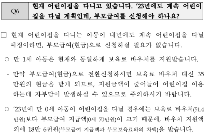 2) 2022년 12월에 영아수당(월30만원 또는 보육료)를 받고 있었다면 부모급여를 별도로 신청하지 않아도됩니다
