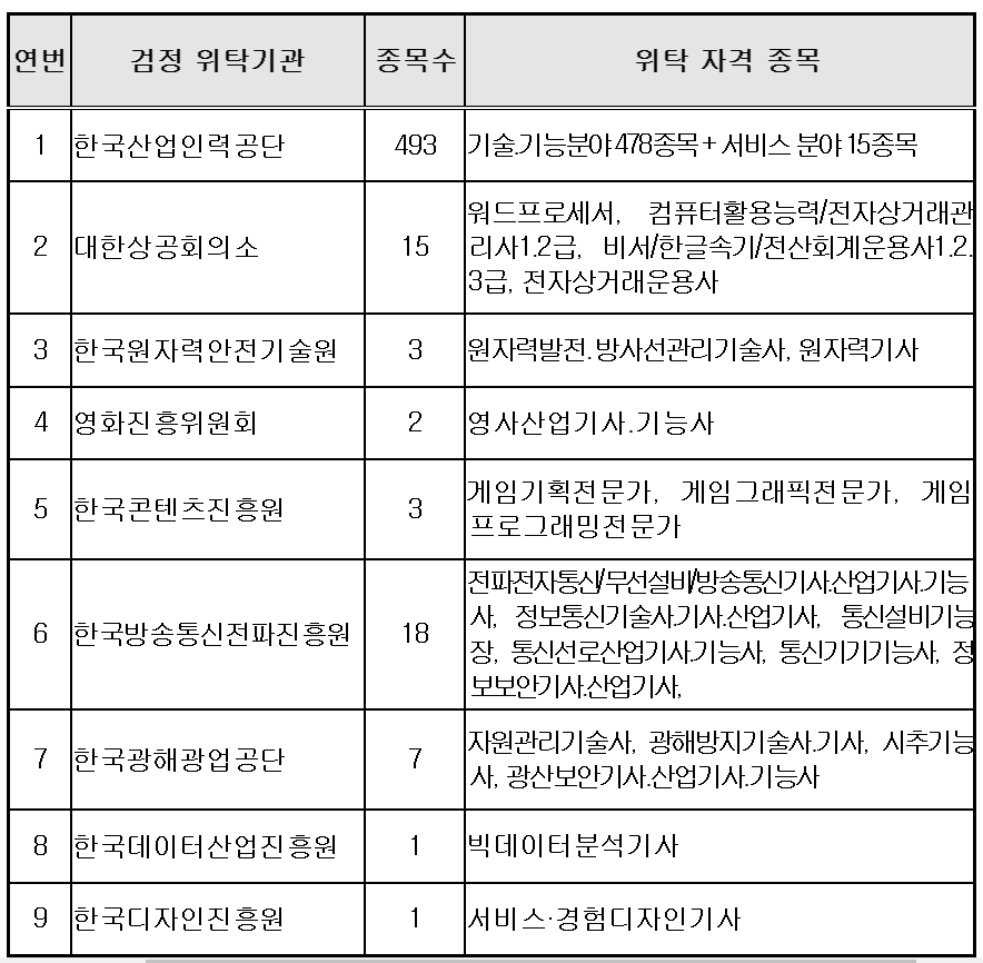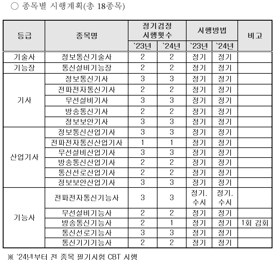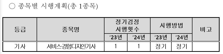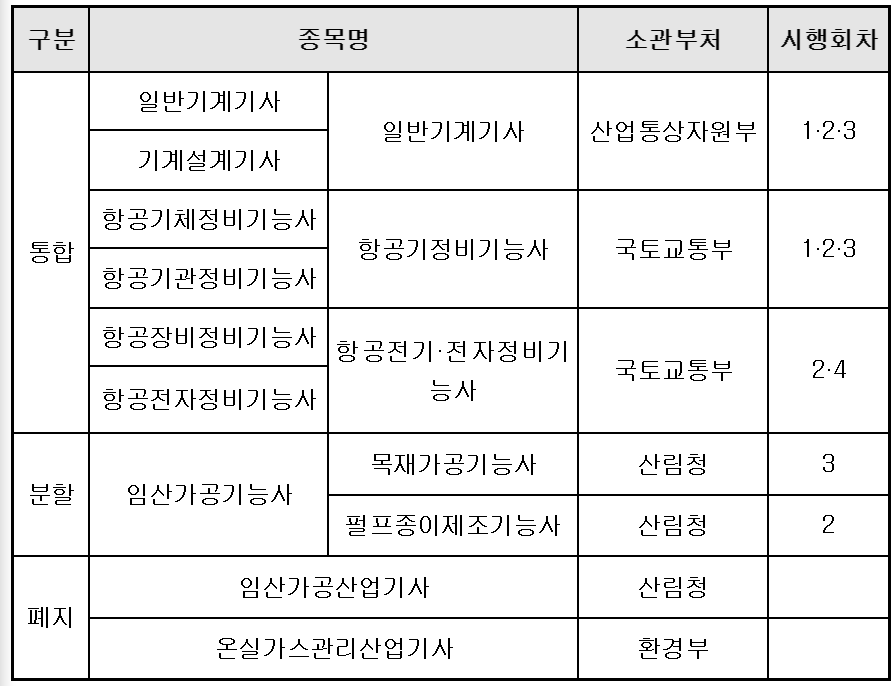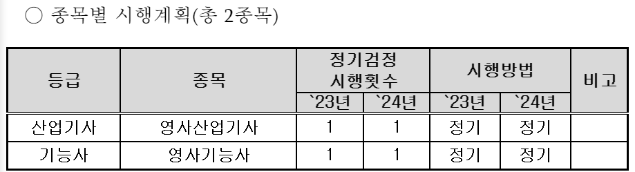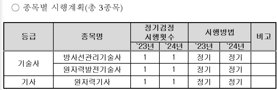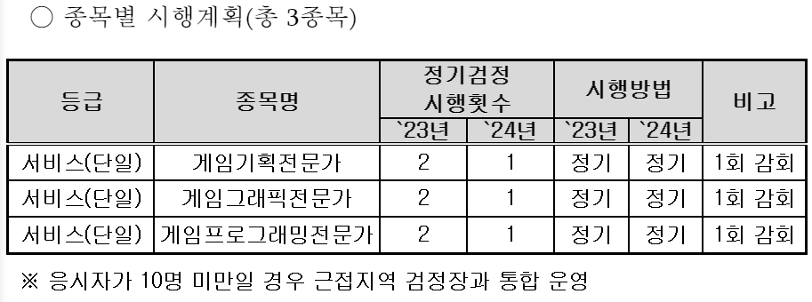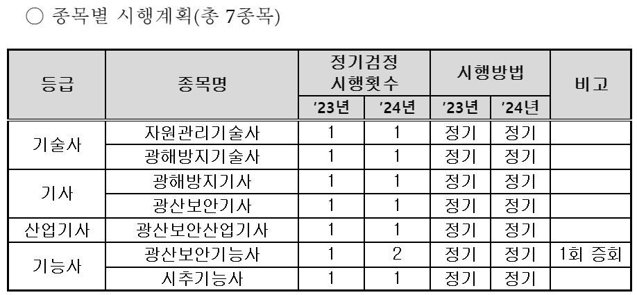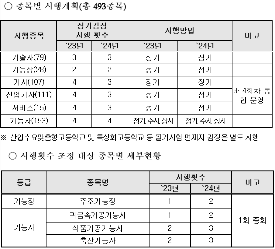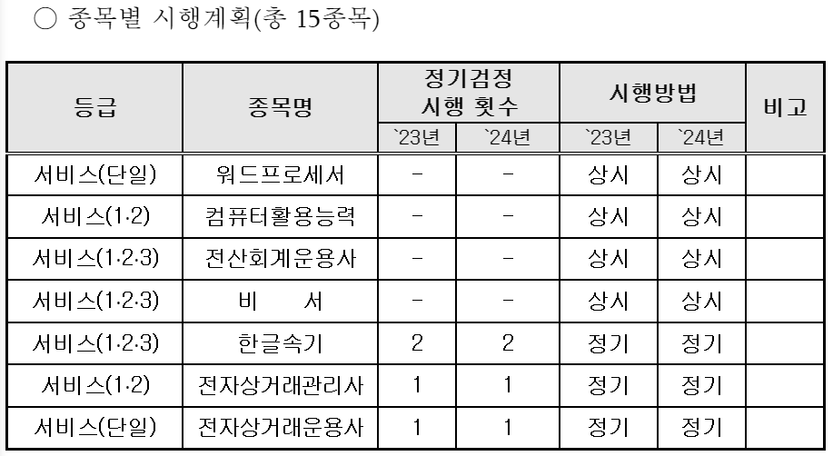 - (정기검정) 1회차 71종목, 2회차 71종목 시행