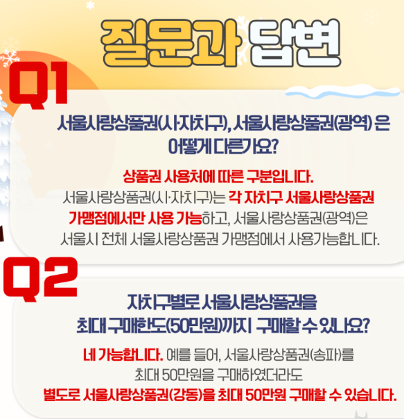 - 구매한 상품권은 각 자치구 내 가맹점에서만 사용 가능하며, 중구사랑상품권은 중구 내 가맹점에서만 사용가능