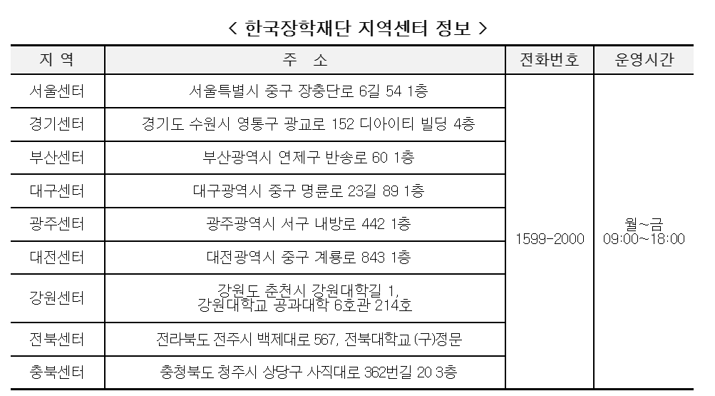 한국장학재단 누리집을 통해 확인 할 수 있으며 자세한 상담이 필요한 경우 전화상담(1599-2000) 또는 재단의 각 지역센터 방문하면 맞춤형 상담 가능