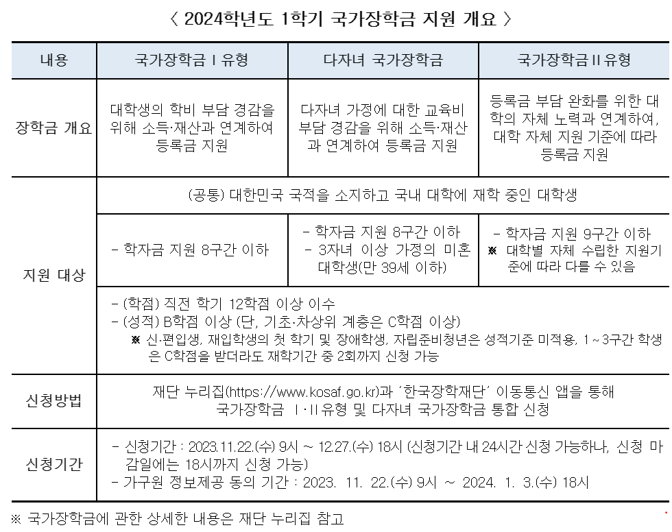 2024학년도 1학기 국가장학금 신청방법, 기간, 대상 등 완벽 총정리